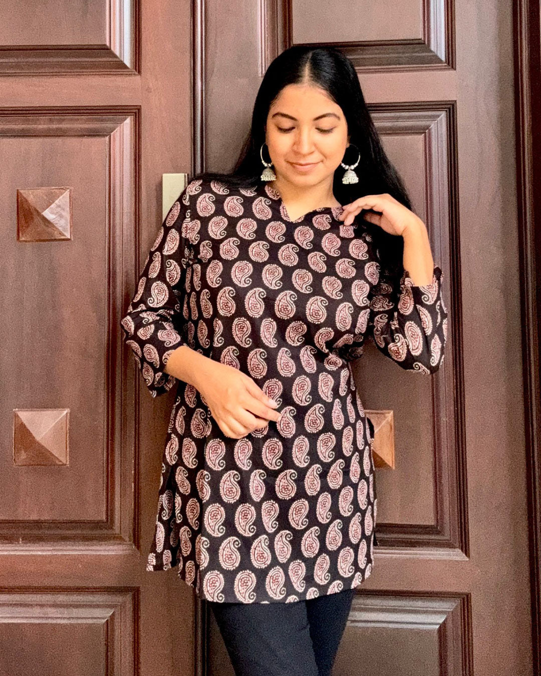 Black Paisley Print Short Kurti – 30 Inch Kurti