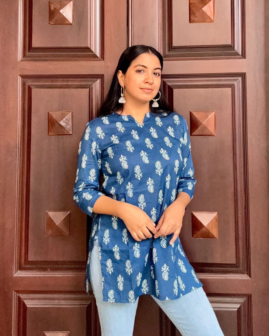 Indigo Breeze Cotton Kurti – 30 Inch Short Kurti