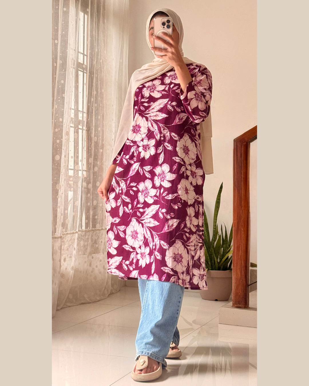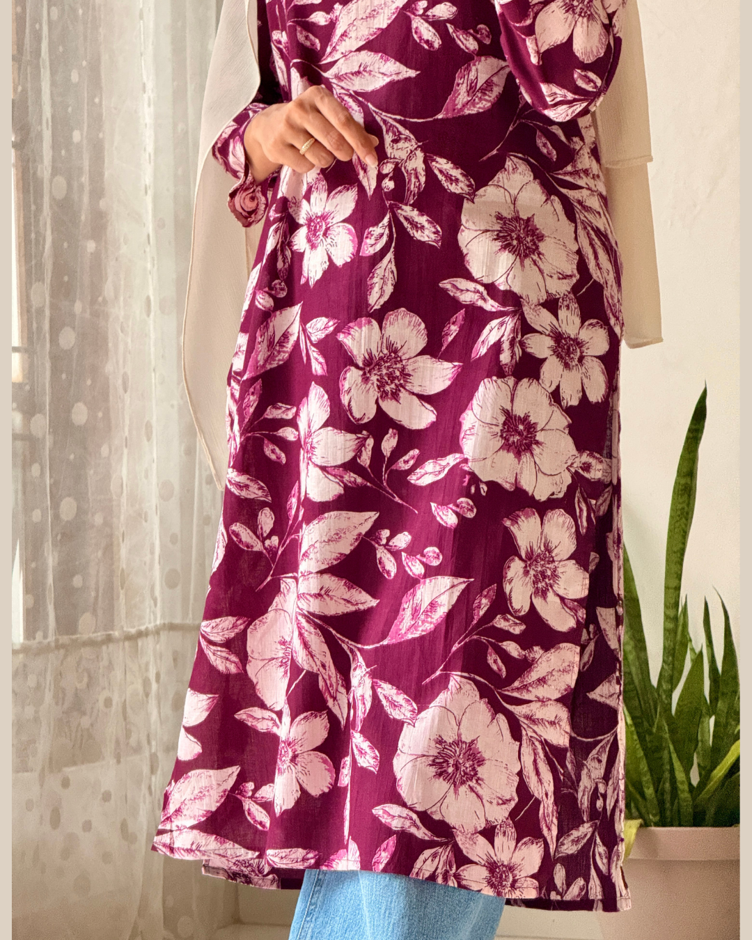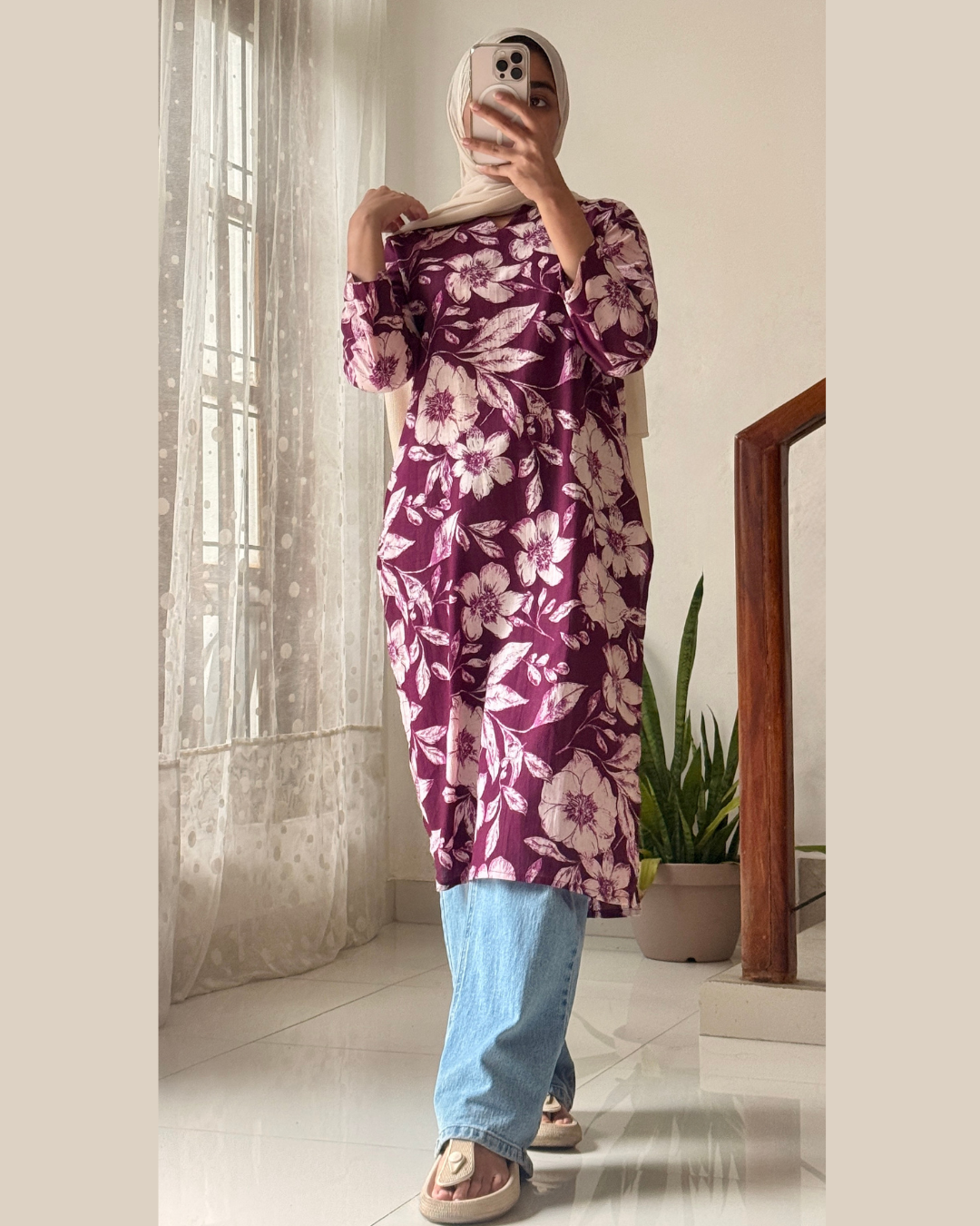 Channel the grace of vintage Bollywood beauty with Madhubala Mood – a deep maroon kurti top with bold white floral patterns that bring drama and elegance to your wardrobe. This piece is perfect for the modern woman who loves ethnic kurti tops in Sri Lanka with a hint of old-school glam. It’s flattering, comfortable, and easy to style.
