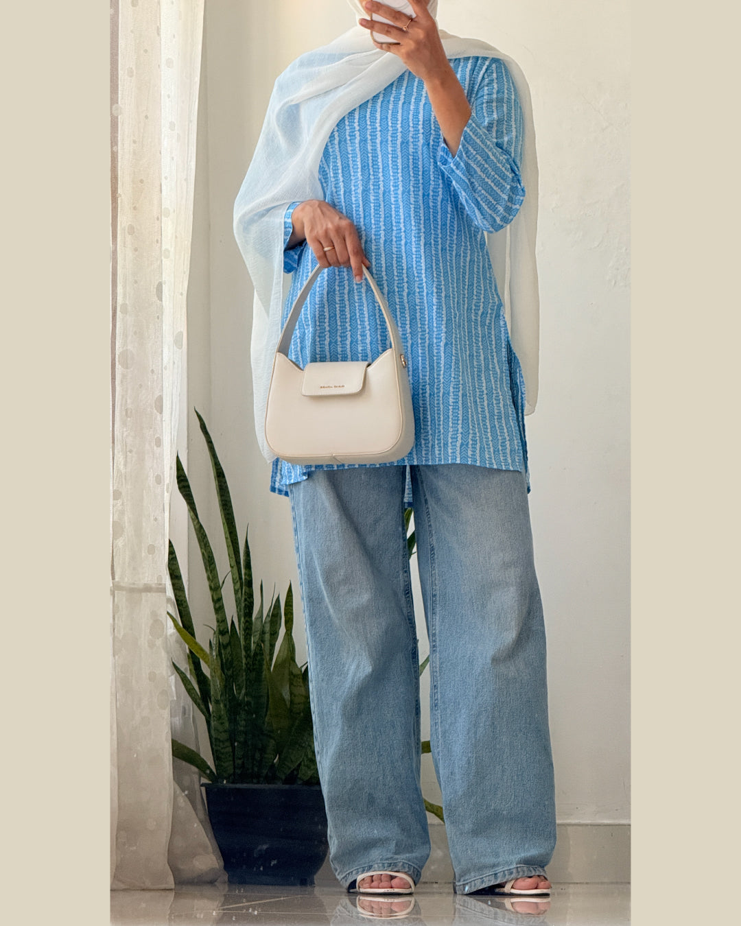 Understated yet effortlessly elegant, Neela Raag is a modern desi essential. The vertical white print creates a soft rhythm on the blue base, elongating your frame and offering a sleek silhouette. The simplicity of this kurti makes it a versatile piece for both casual and semi-formal styling.