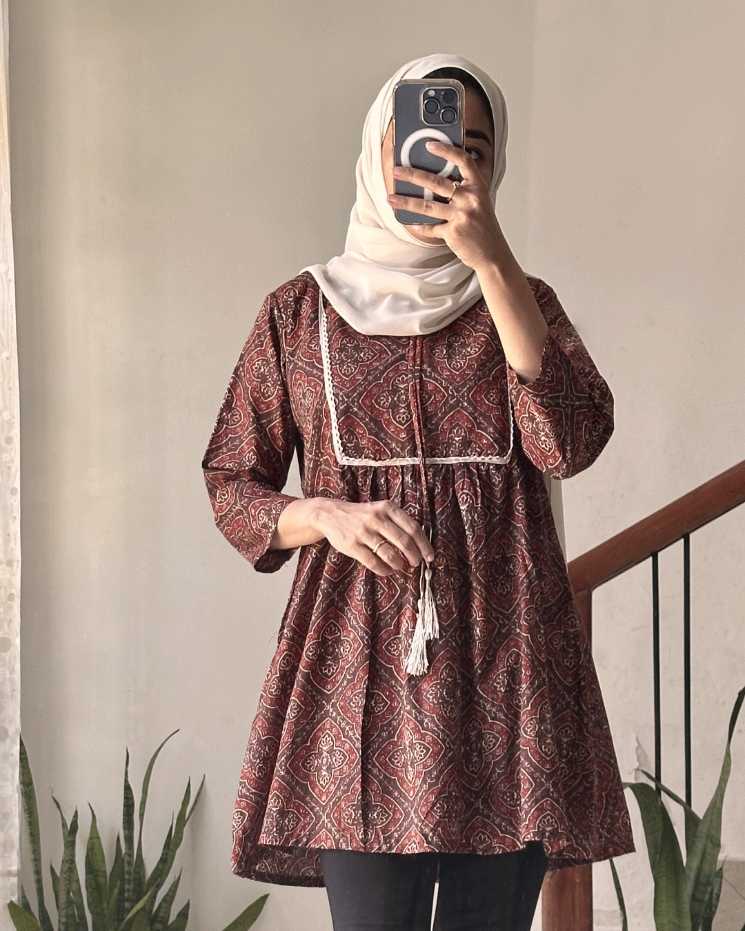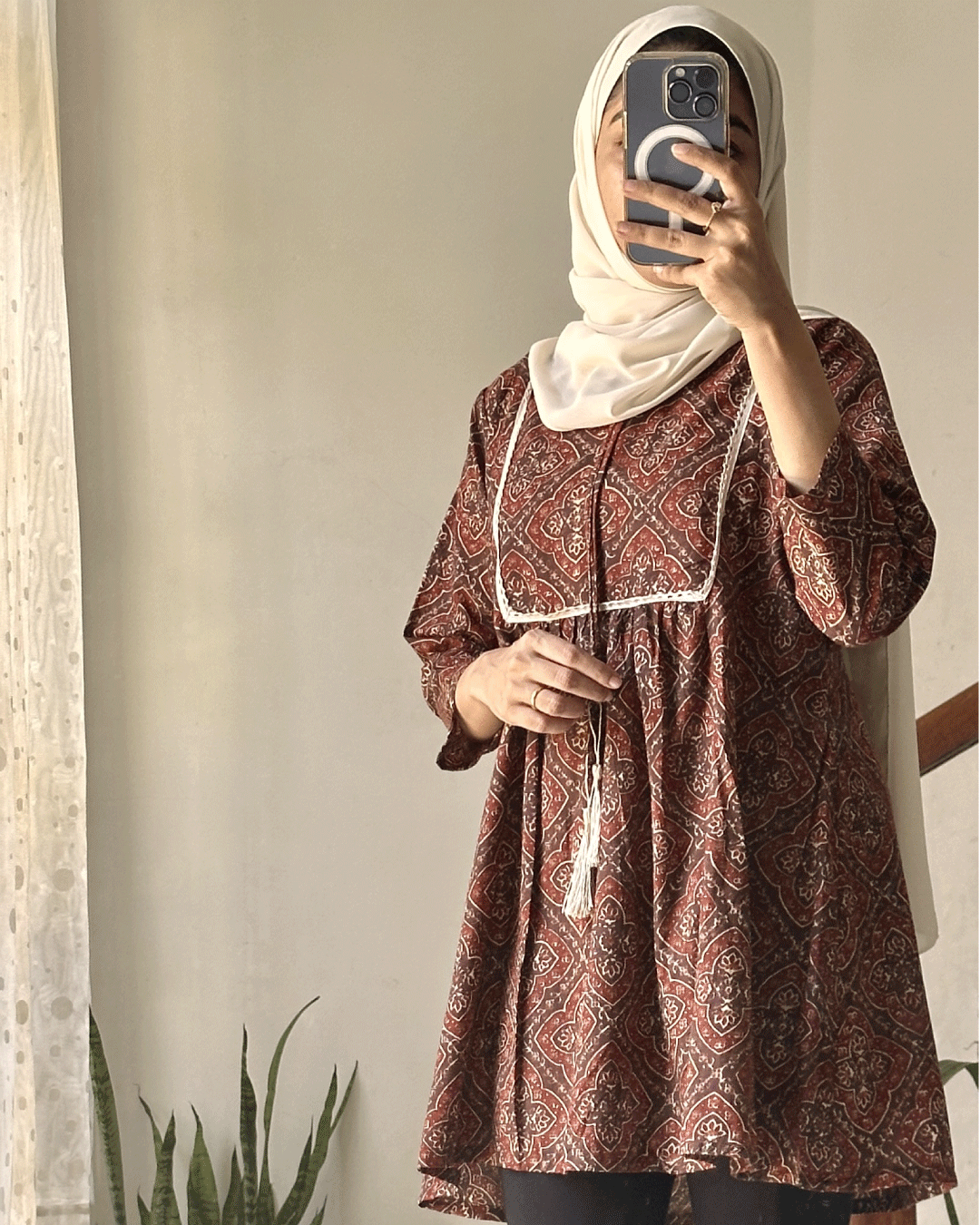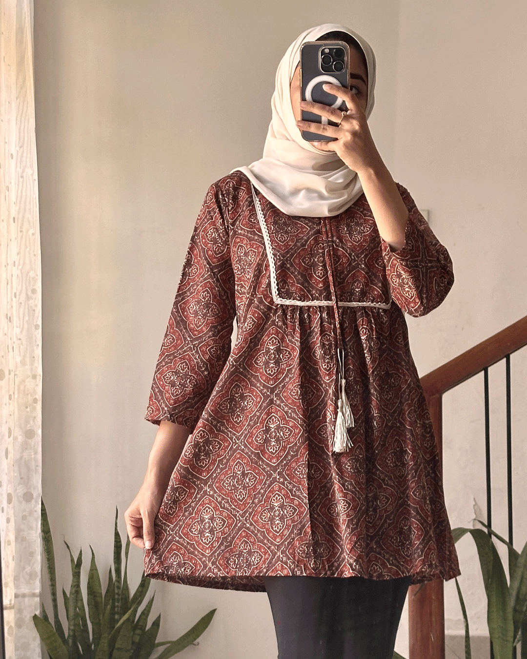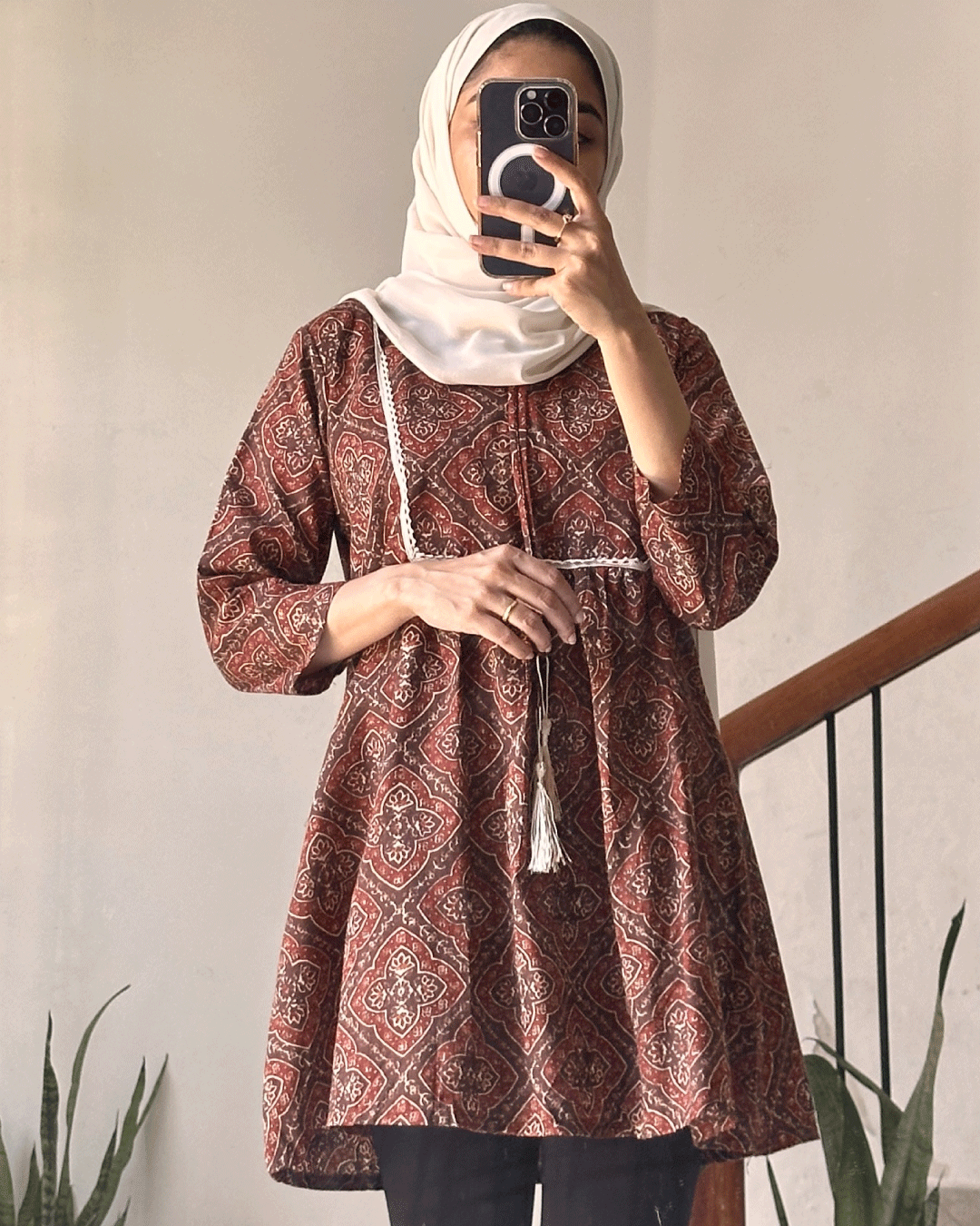 A perfect blend of tradition and elegance, the Midnight Bloom short kurti features exquisite floral hand-block prints on a deep navy base. The intricate lace-bordered yoke and delicate tassel add a vintage charm, making it a timeless wardrobe staple. With a 30-inch length and a relaxed yet flattering silhouette, this kurti is designed for effortless grace. The soft, breathable fabric ensures comfort while maintaining an artisanal, handcrafted appeal.