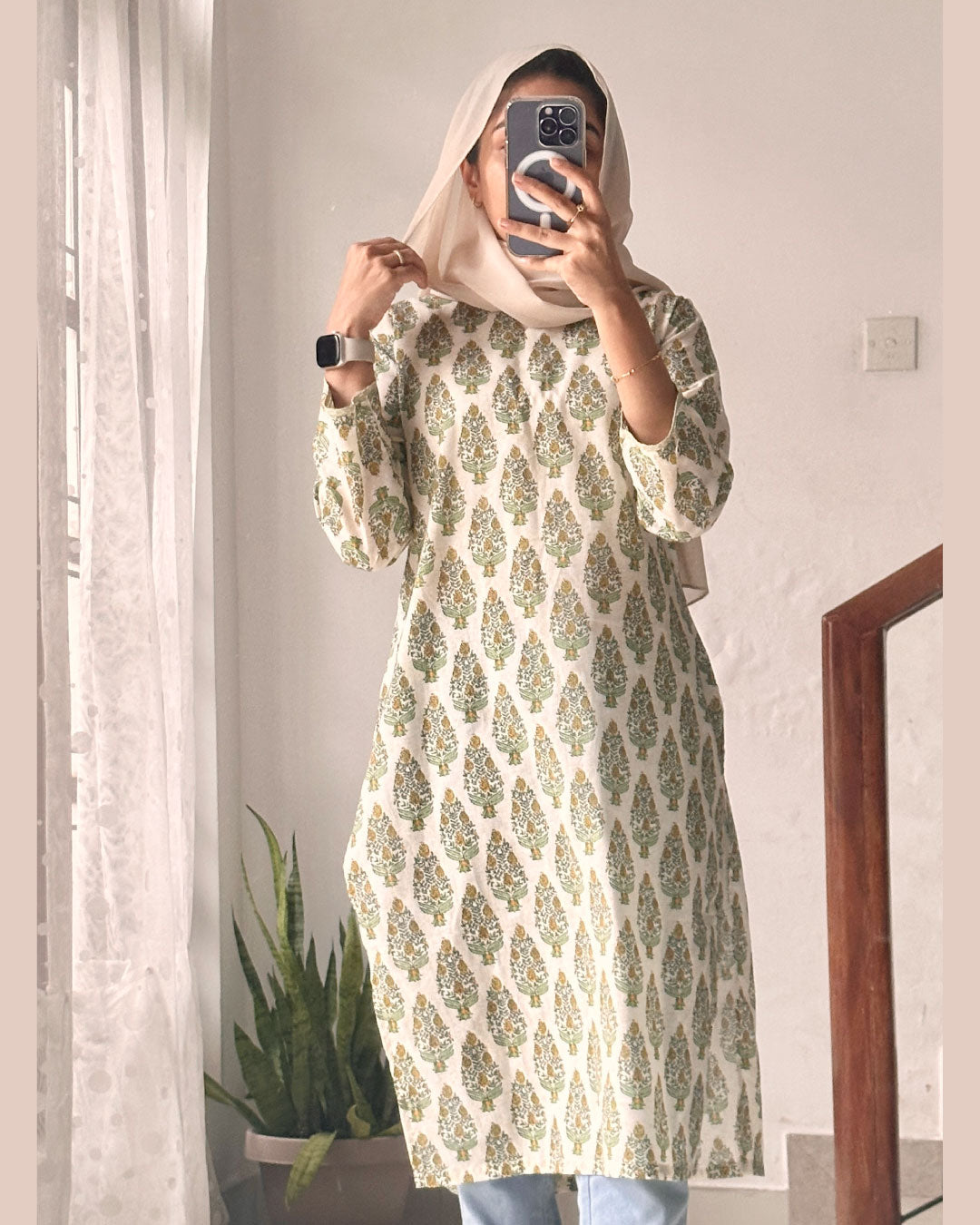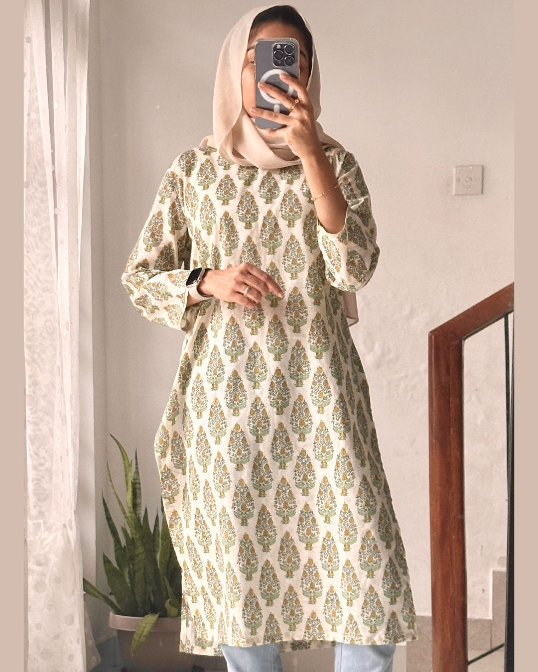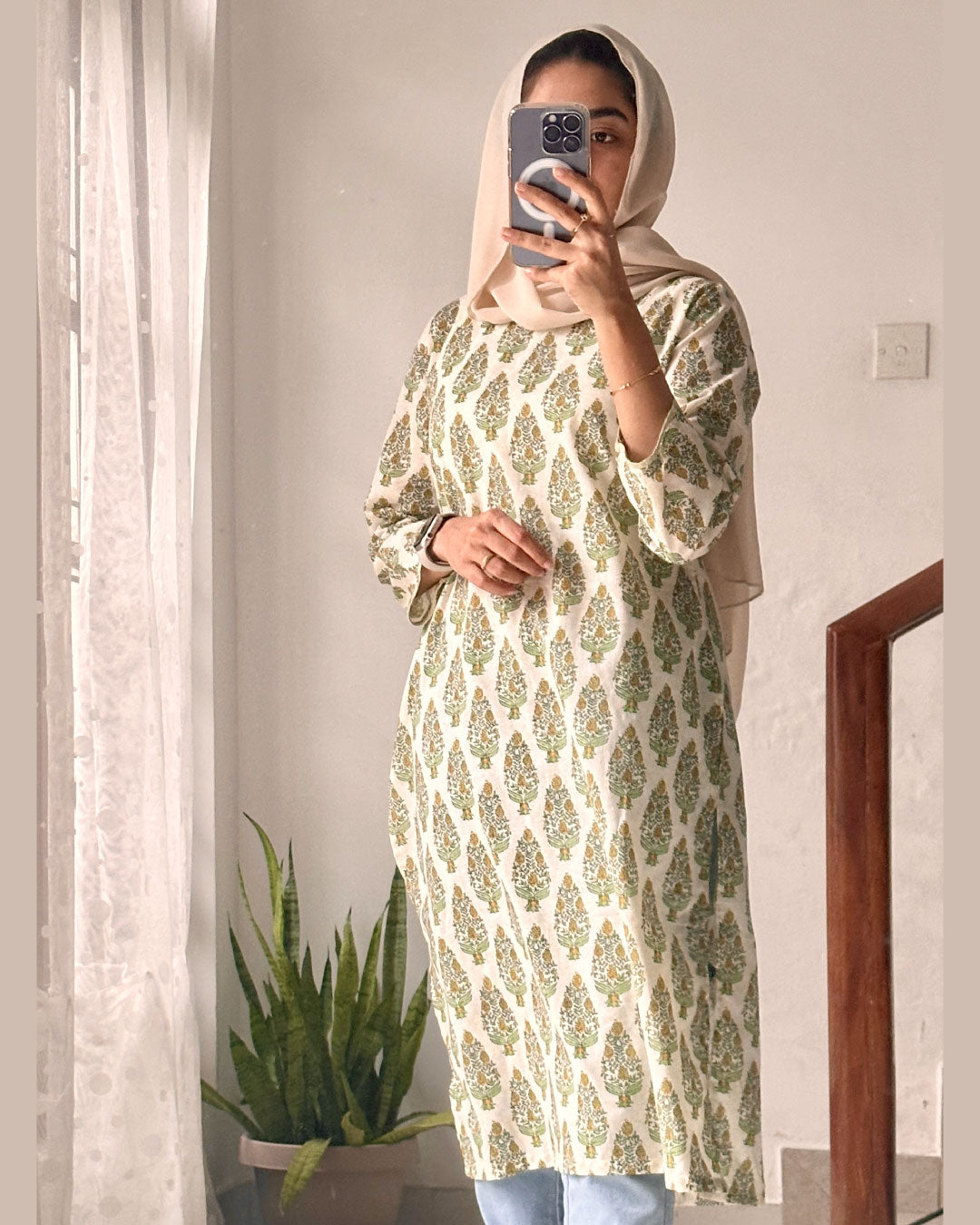 This kurti combines cheerful colors with a timeless design, offering a versatile piece that’s perfect for brightening your day. The breathable cotton fabric ensures comfort while the vibrant print keeps you looking effortlessly stylish.